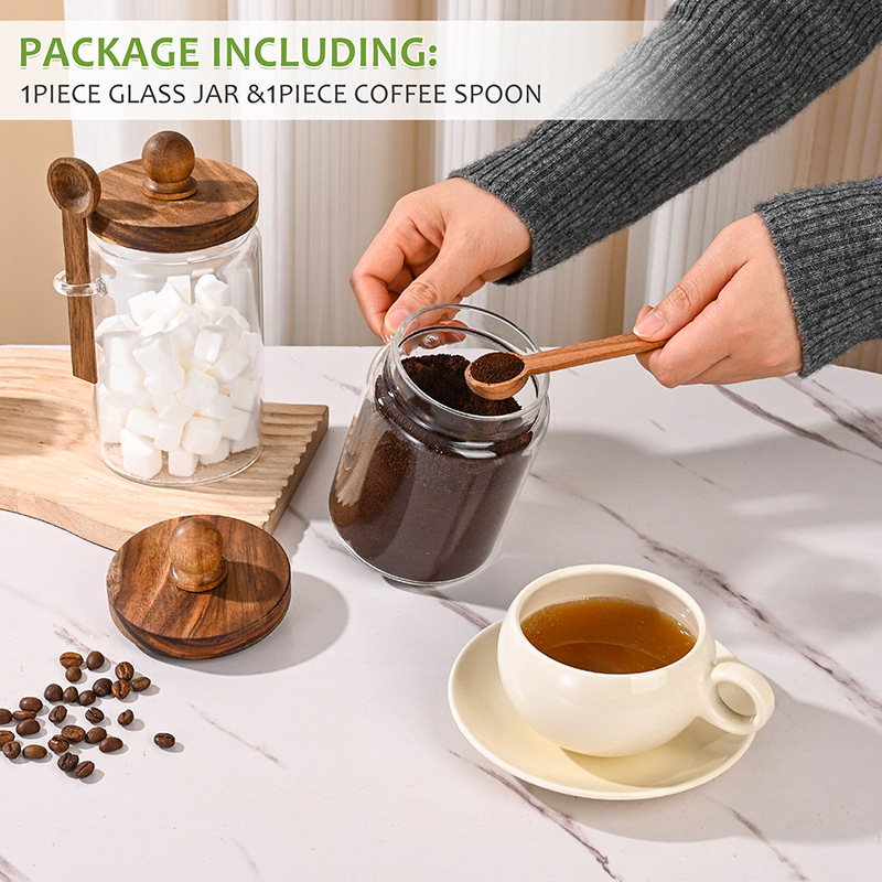 カスタマイズされたアカシア材のスプーン付き保存瓶、調味料瓶、蜂蜜瓶、高ホウケイ酸ガラスコーヒー豆保存瓶の加工