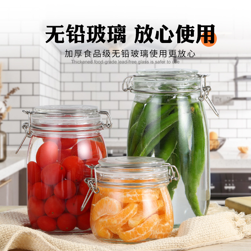 ガラス瓶密封瓶蓋付き食品瓶透明缶家庭用漬け物レモンパッションフルーツ蜂蜜保存瓶