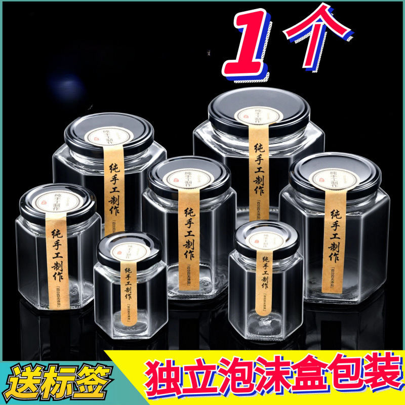 食品グレードのガラス瓶密封瓶蓋付き小さな空瓶 1.0kg パック蜂蜜チリジャム缶六角形