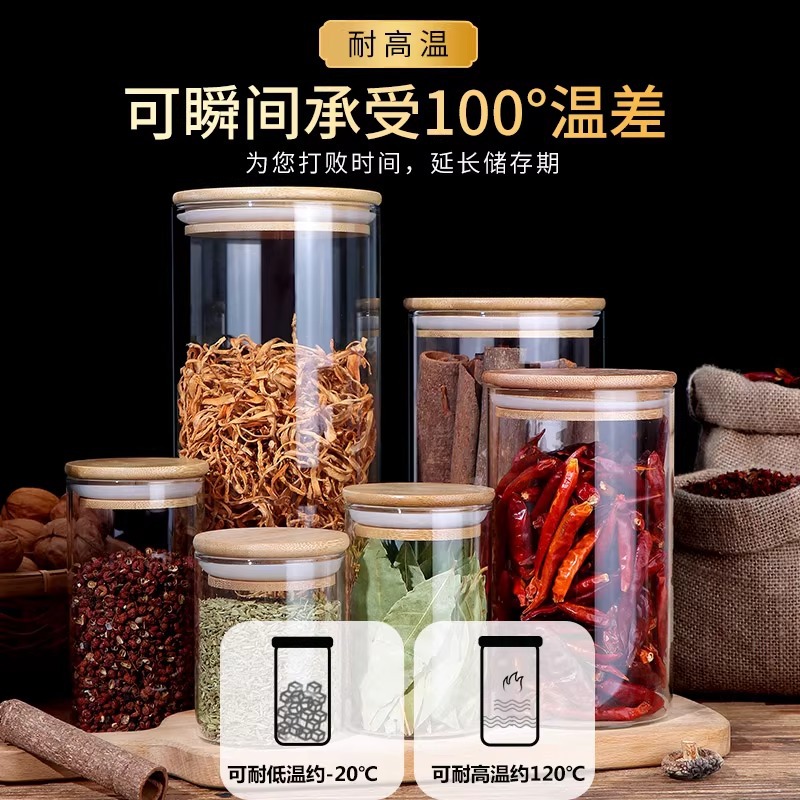 高ホウケイ酸ガラス密封瓶家庭用茶瓶茶瓶茶箱スパイス小瓶蓋付き紅茶と花茶を保存