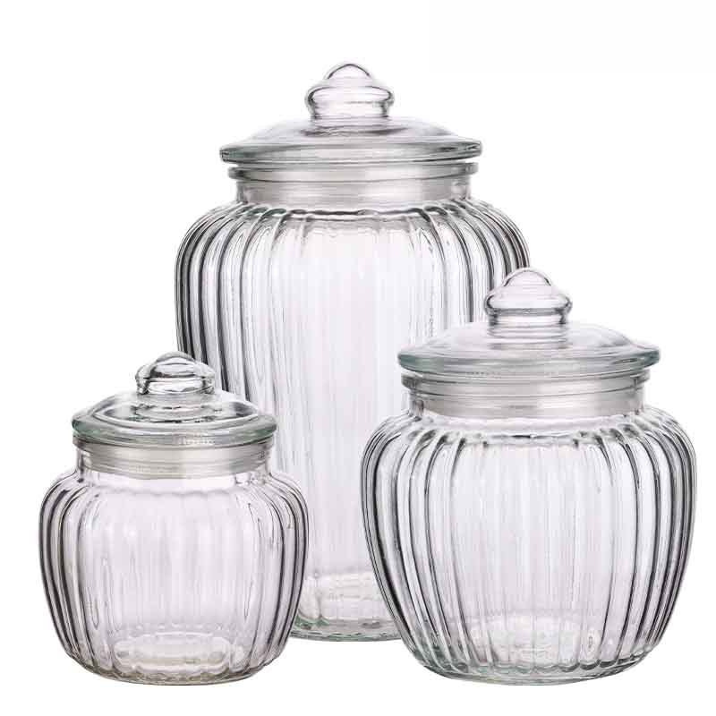 ヨーロッパの透明なガラスのキャンディージャー蓋付き大型尖ったガラスの保存瓶結婚式のデザートテーブルモデルルームの装飾
