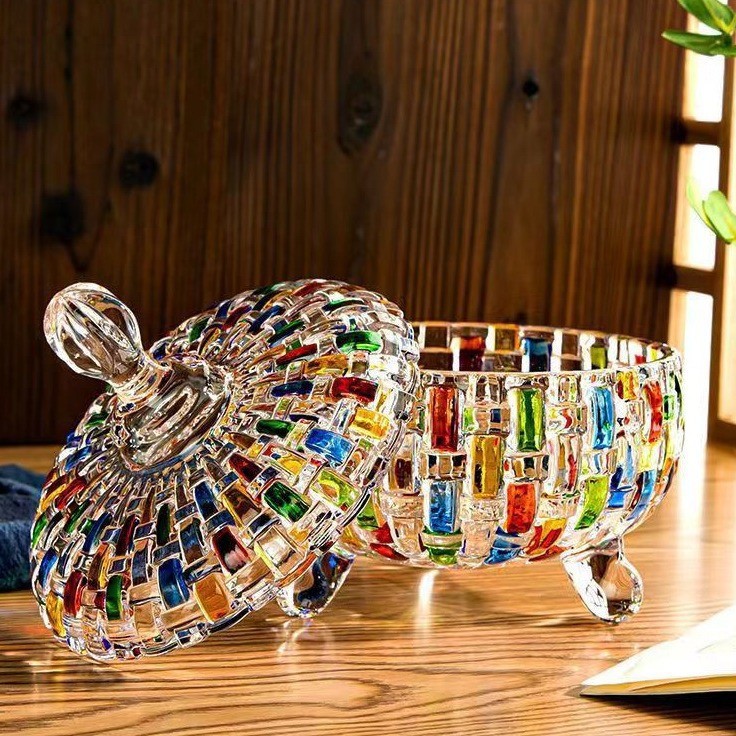 大型織りエンボスクリエイティブライト高級職人手描きクリスタルガラスキャンディージャージュエリーボックス収納瓶