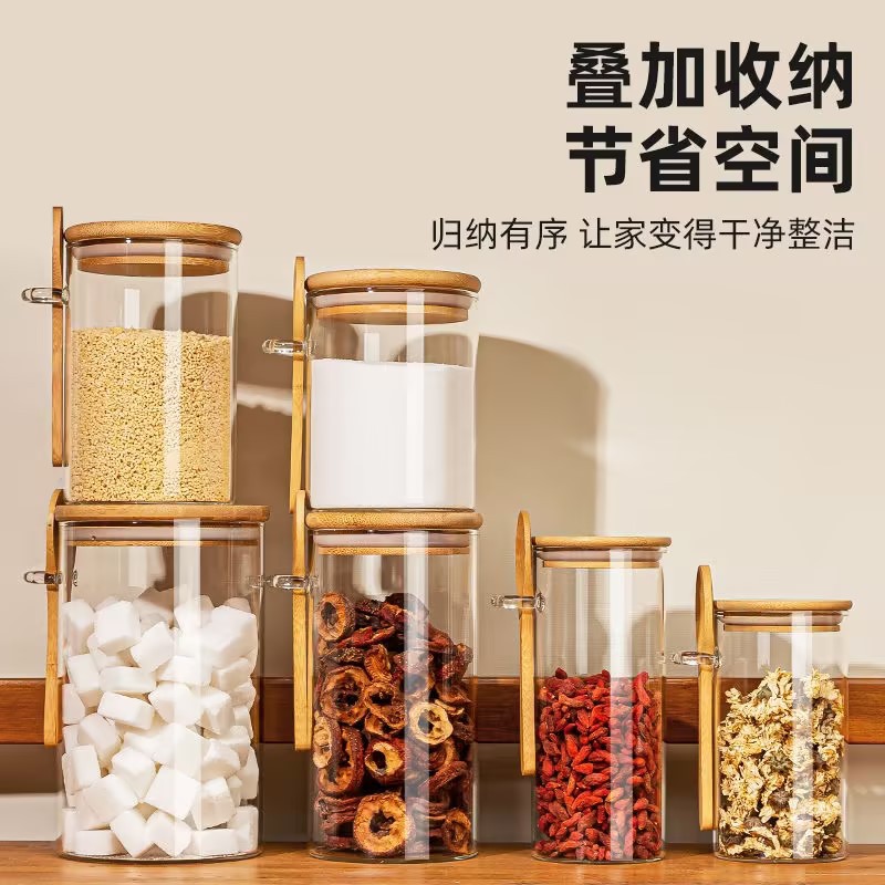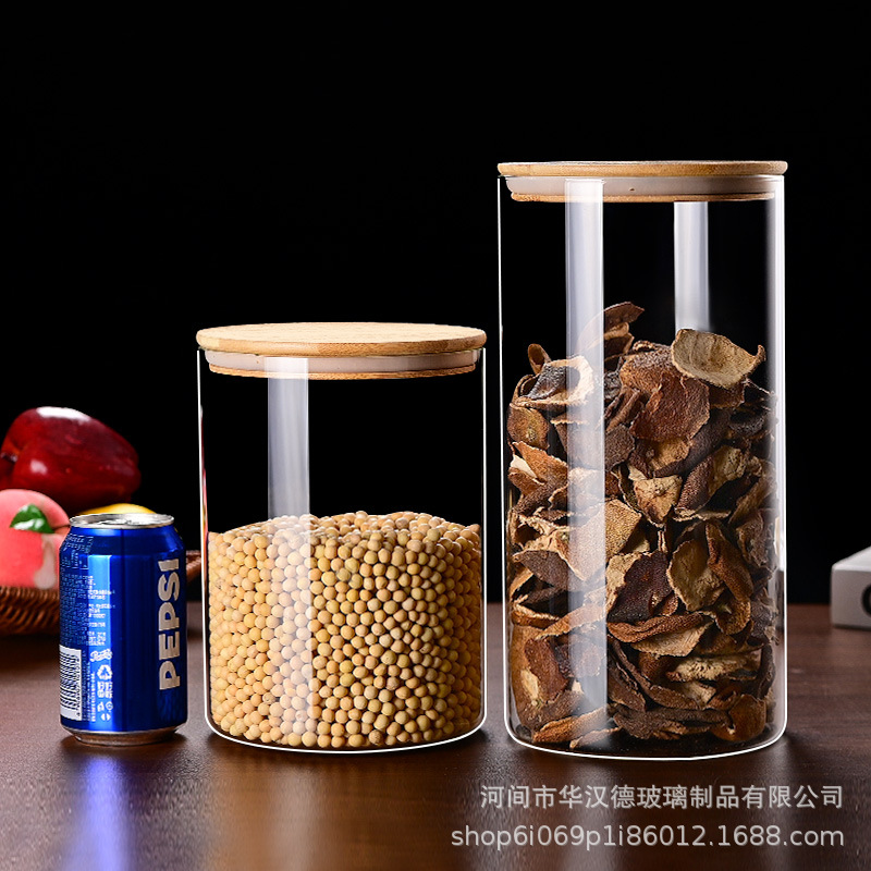 竹木蓋耐熱ガラス貯蔵タンク密封缶収納瓶調味料缶茶葉缶ドライフルーツ缶ガラス瓶
