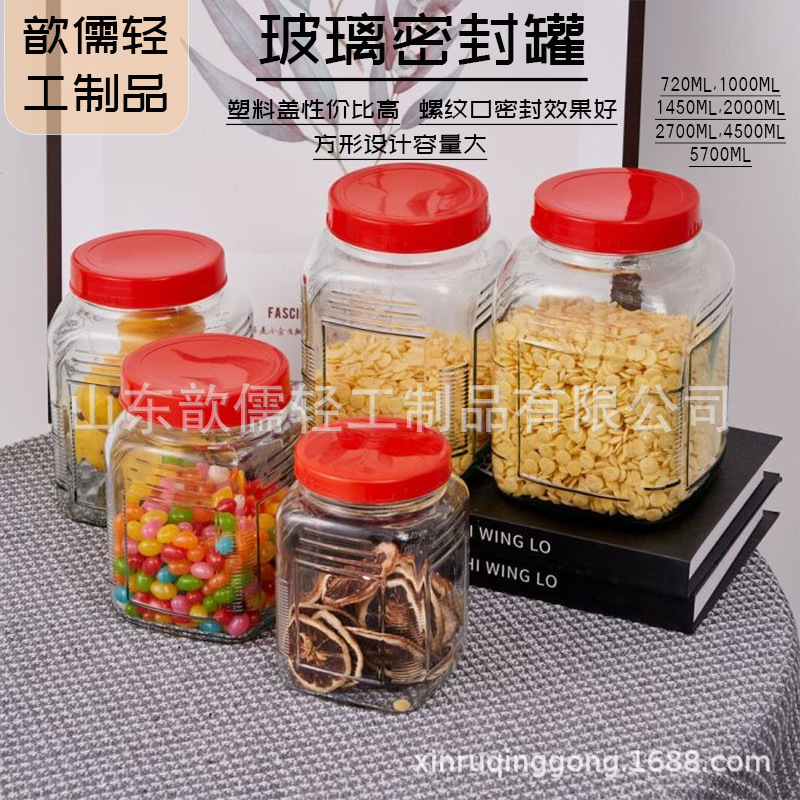 角型透明ガラス収納缶キッチン食品収納展示会サンプル展示缶大容量広口瓶