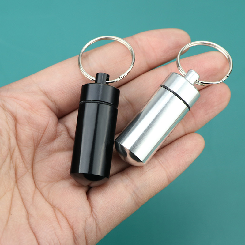 金属のペンダントの小さい薬の瓶のキーホルダーのアイデアの水滴のアクセサリの部品のチタンの金属の装飾の多機能の防水の薬の箱