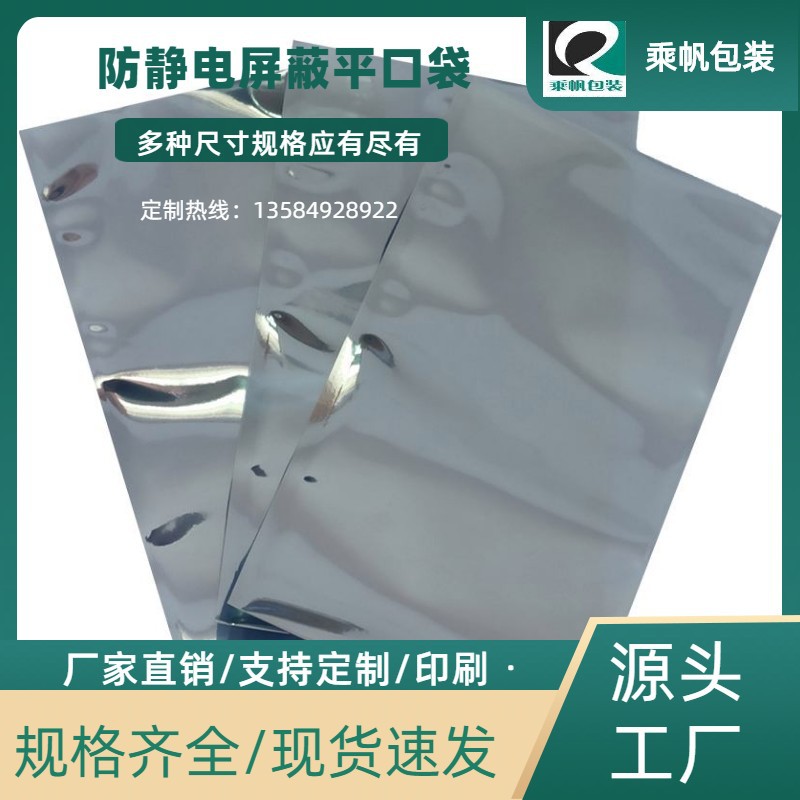 防静电平口袋静电屏蔽袋电子产品包装袋银灰色半透明复合袋