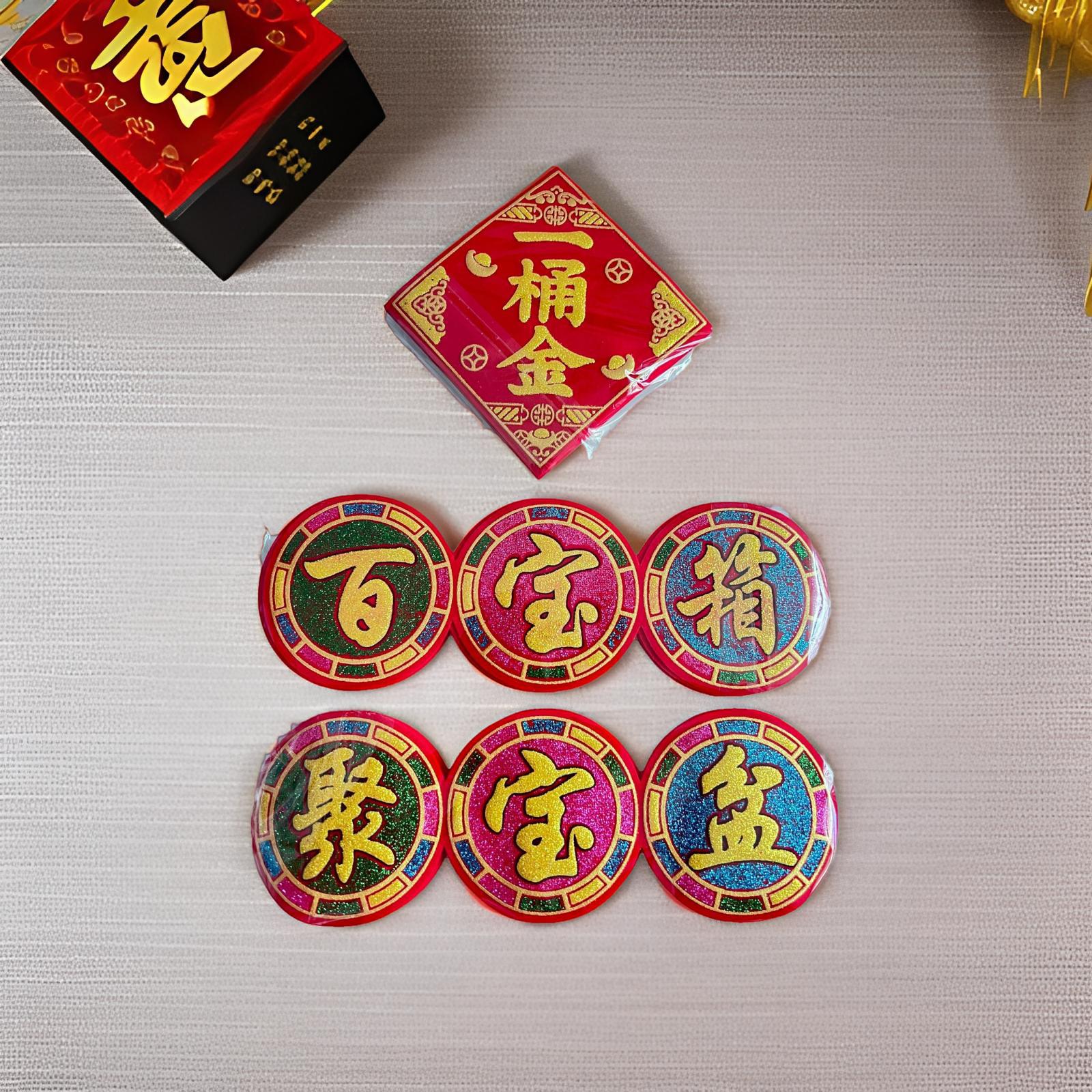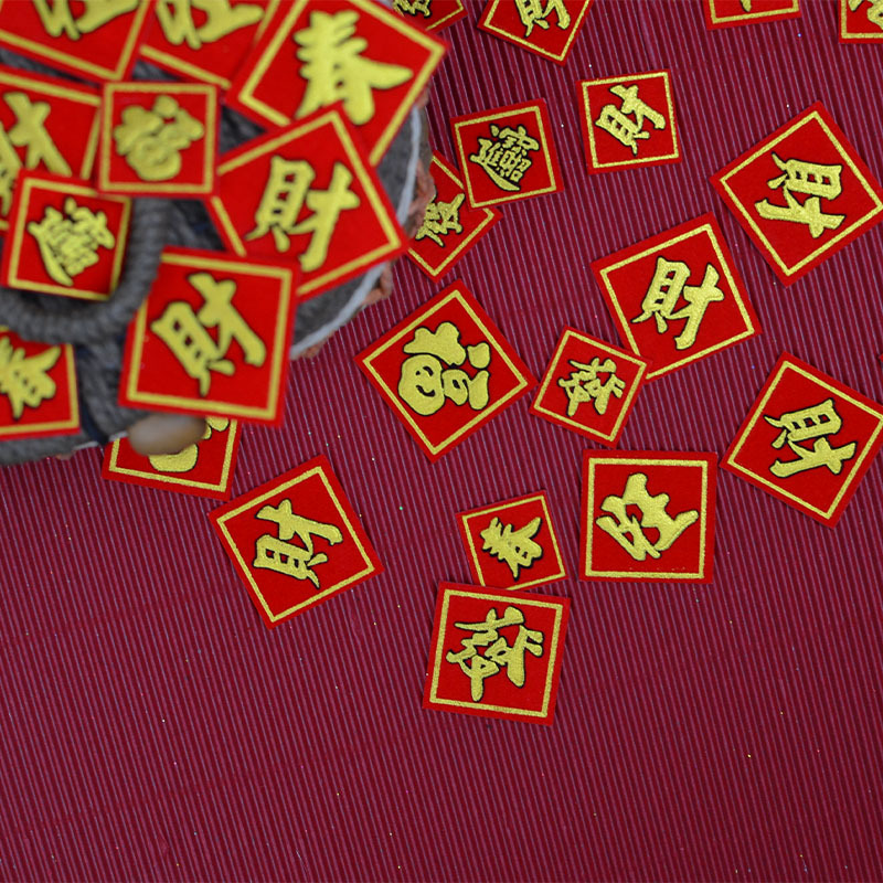 手投げミニ字貼り装飾用品2.5cm 3.5cm福旺財発宝春絨布箔押し自粘米桶貼り