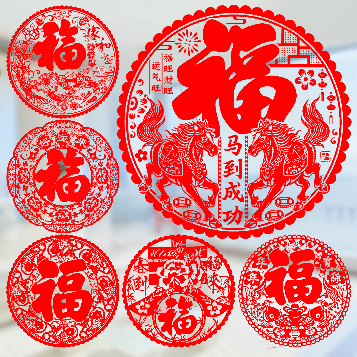 馬年ミニ福字ステッカー装飾用品、キャビネット窓飾りステッカー、手投げ新年飾り、ドアステッカー