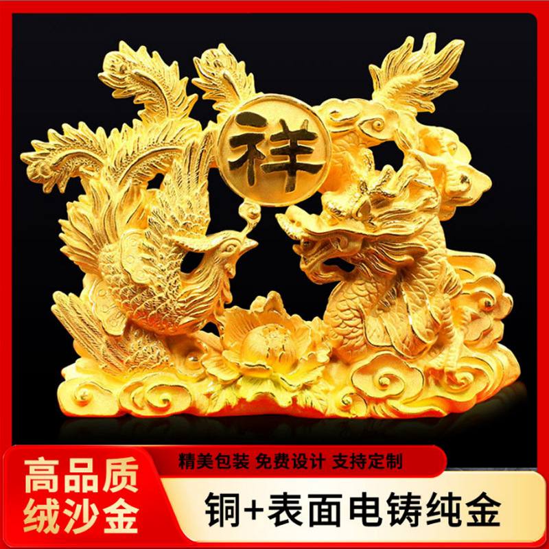 龍と鳳凰の祝福ベルベットサンドゴールドウェディングギフトオーナメントクラフトデコレーション友人や親友へのウェディングギフト