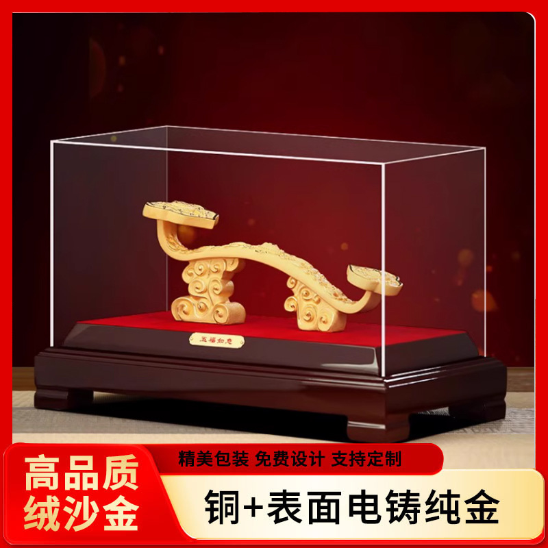 ベルベットサンドゴールド五福如意装飾品工芸品翡翠如意高級装飾品新築祝いギフト