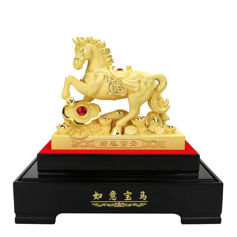卸売ベルベットサンドゴールド干支新年馬装飾品ゴールド幸運工芸品風水ホームアクセサリーイベントギフト