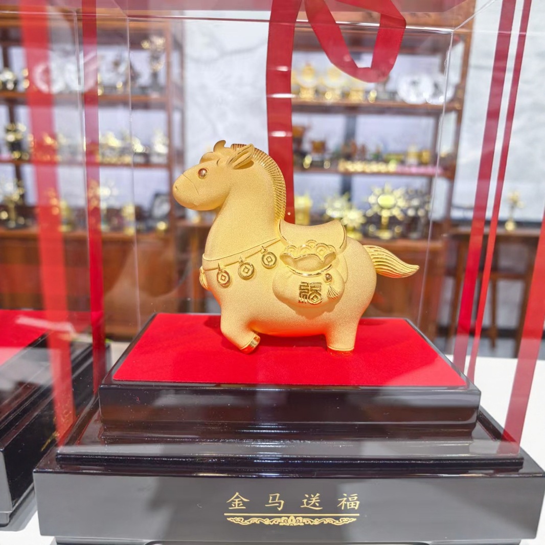 2026年馬年、ベルベットサンドゴールドメッキ装飾品、金馬祝福、千里の金馬飛行、セール、保険ギフト