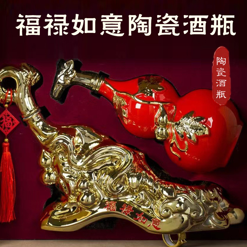景徳鎮セラミックレッドクリスタル釉ひょうたんボトル 0.5kg ワインボトルワインセットワイン瓶国家色牡丹