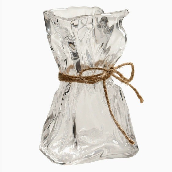 プリーツデザインマネーバッグガラス花瓶立体ヨーロッパつや消し花瓶水耕花花瓶リビングルーム玄関装飾