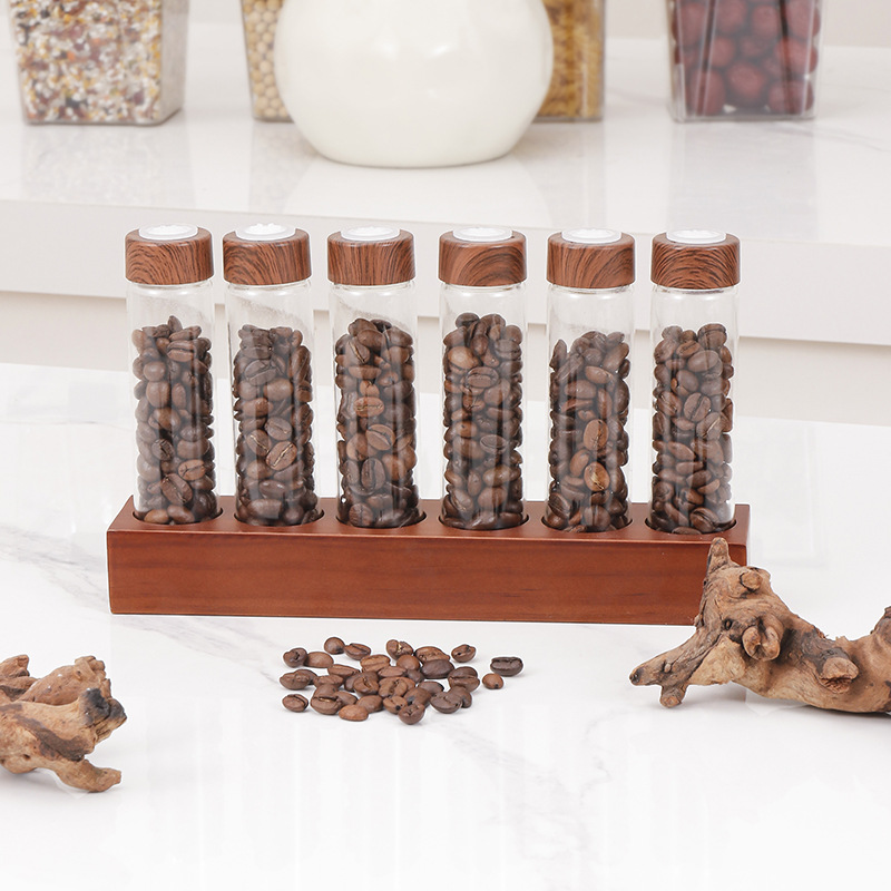 コーヒー豆単品排気弁付き密封ガラス瓶、手淹れコーヒー豆密封保存ディスプレイスタンド、香り瓶