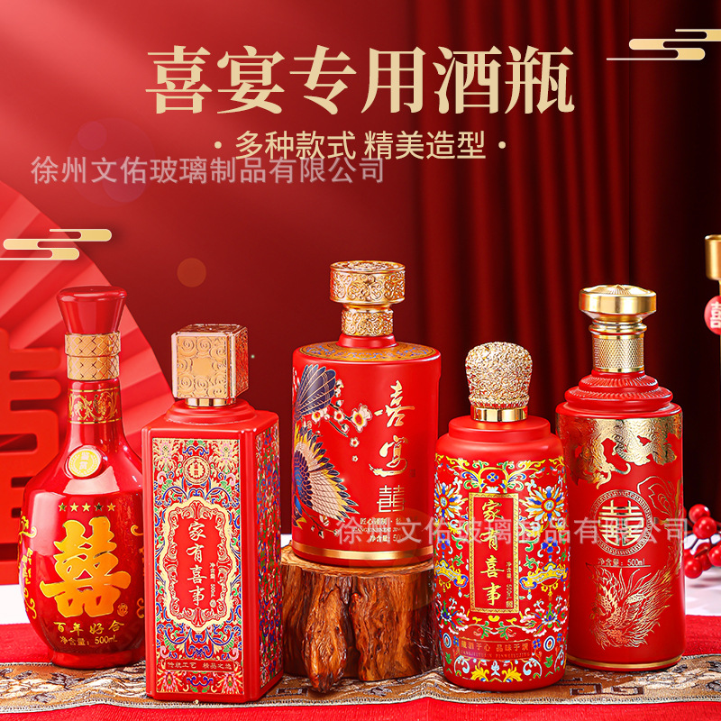 高級祝宴結婚白酒瓶空瓶結婚祝い赤自醸造密封一斤入誕生日寿宴包装セット