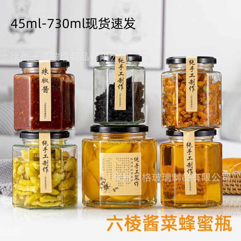 卸売り六稜蜂蜜瓶1斤入りペースト瓶200gガラス瓶六角漬物唐辛子味噌汁瓶燕窩ジャム
