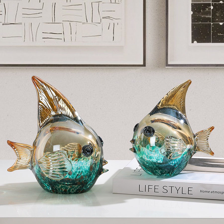 軽くて豪華でシンプルな水晶瑠璃魚の置物リビングルームのテレビ棚の寝室の玄関の見本の部屋のガラスの装飾品の飾り物