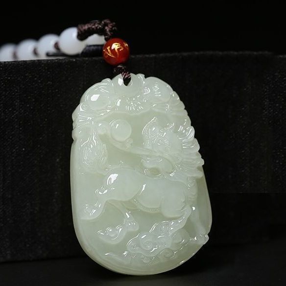 天然和田玉麒麟ペンダント男性ネックレスペンダント女性シミュレーション玉佩首アクセサリー青白玉石シミュレーション玉