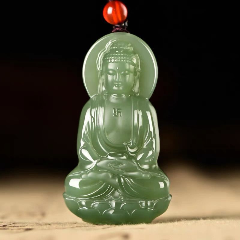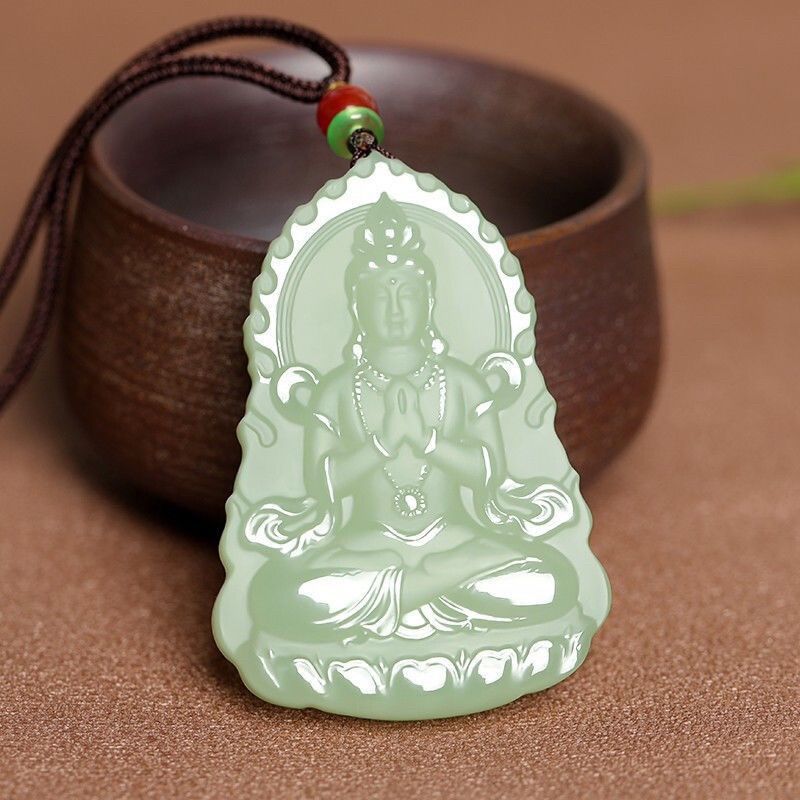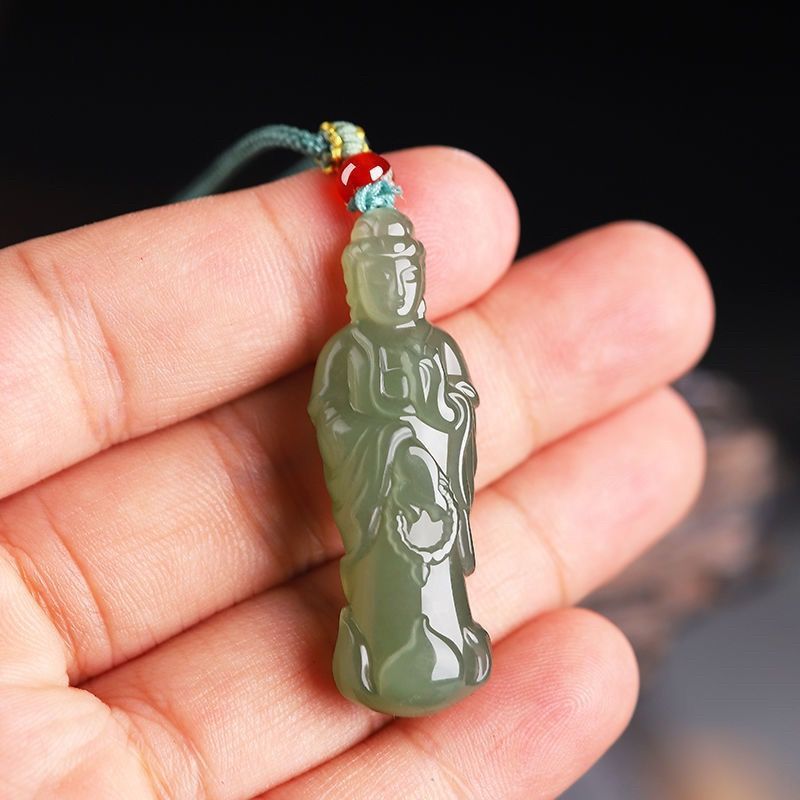 和田玉観音ペンダント メンズ ジェイドペンダント 青白玉 上質模造翡翠 精緻彫刻観音ペンダント