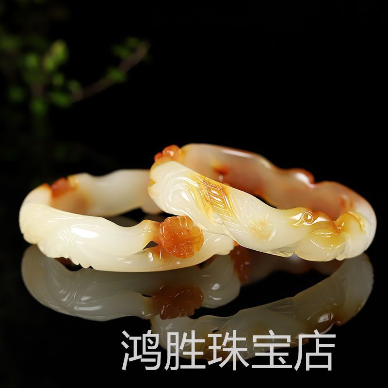 純彫刻雲南黄龍玉喜上眉先玉腕輪気質百合女性ブレスレットは真玉をプレゼントします。