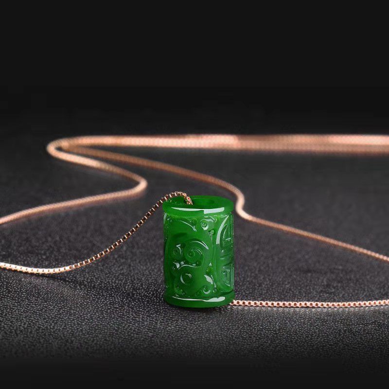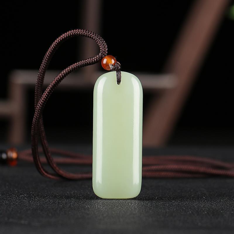 和田玉平安玉ペンダント 翡翠両面彫り如意祥雲模造翡翠平安玉ネックレス