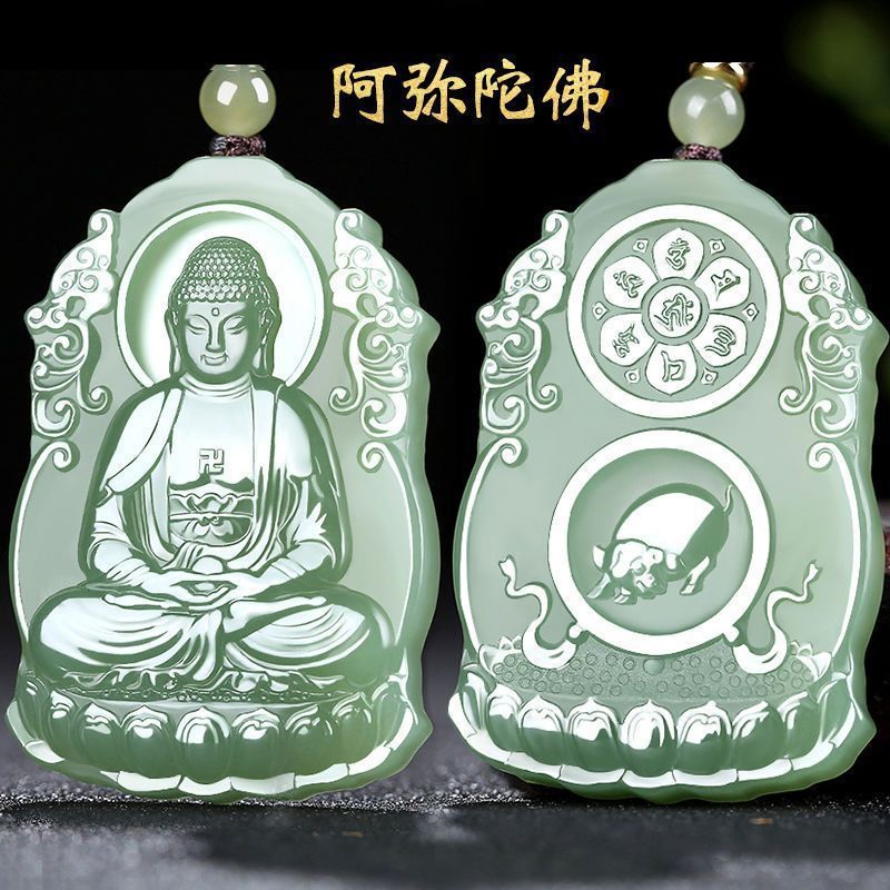 十二生肖守護神和田玉ペンダント玉牌本命仏ペンダント男性湖水緑女性モデルシミュレーション玉