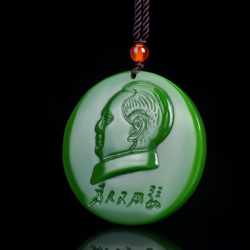 和田主席像章ペンダント、指導者肖像ネックレス、男女兼用翡翠玉ペンダント、模造翡翠
