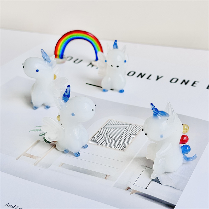 かわいい瑠璃ユニコーンは翼を持って漫画を輸出してデスクトップ工芸品を飾って車でプレゼントします。