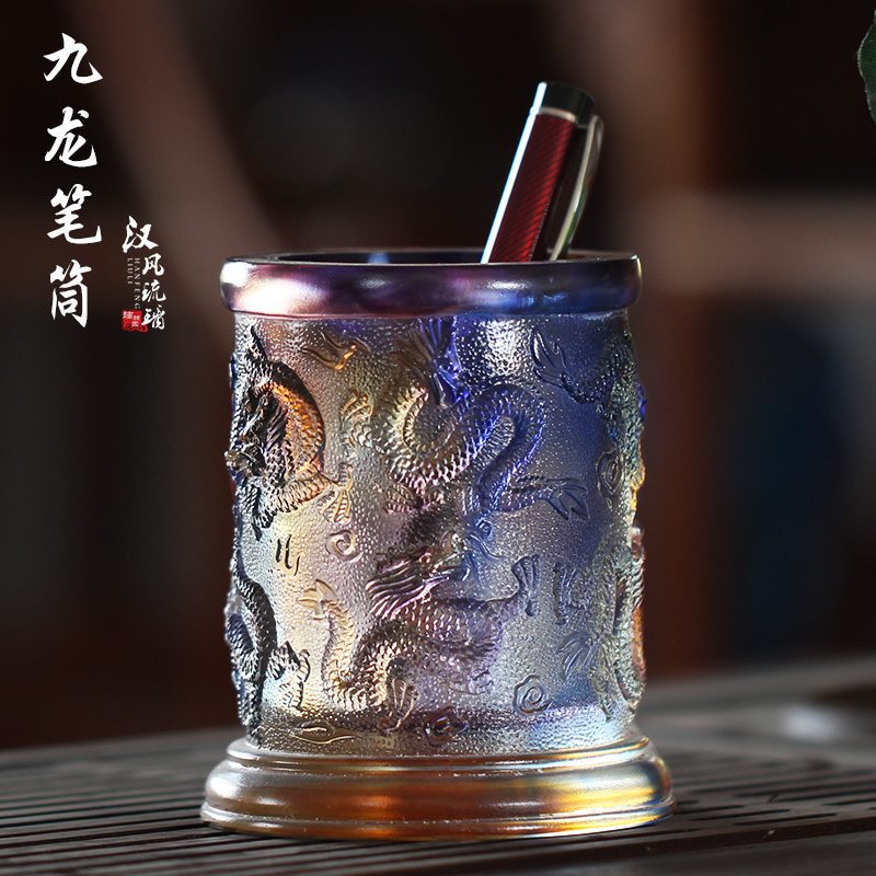 古法瑠璃九竜筆筒置物学習用品家庭用室内書斎デスクトップ置物装飾工芸品プレゼント