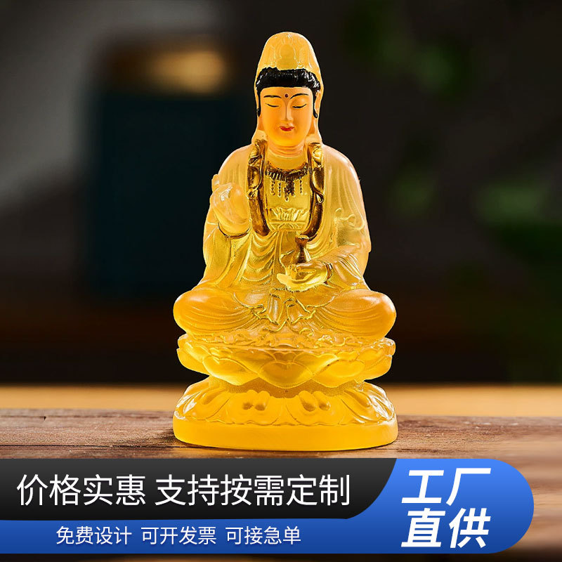 メーカー卸彩絵観音寺院仏像家庭供養置物樹脂水瑠璃観世音菩薩仏像