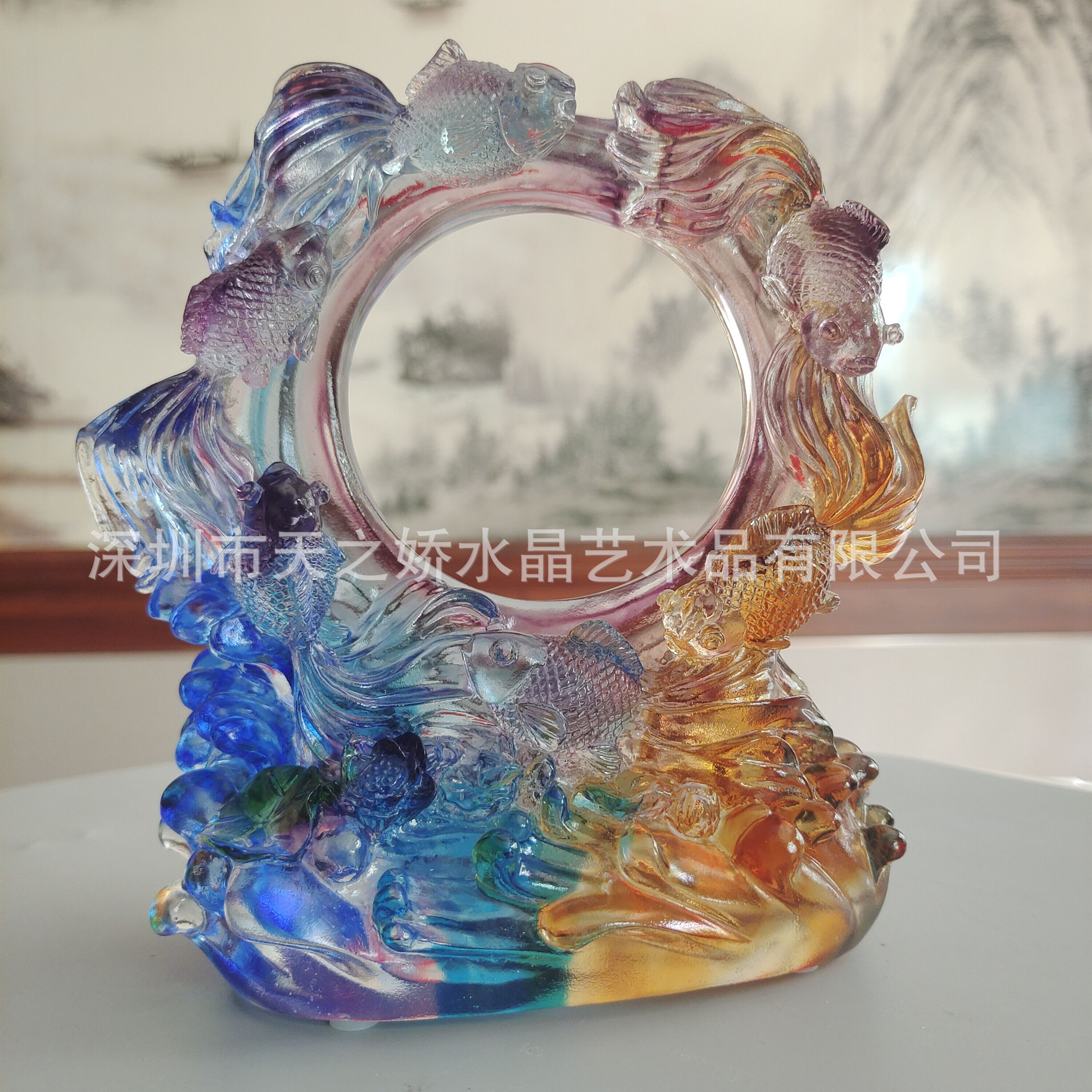 瑠璃魚置物工芸品魚ホームアクセサリーリビング玄関クリエイティブプレゼント金玉満堂オープンギフト