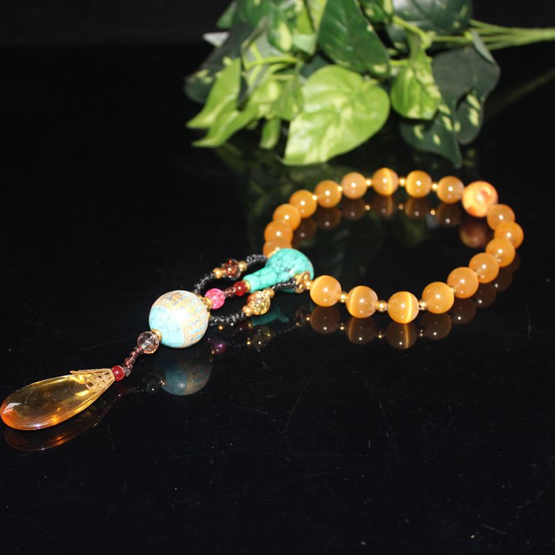 清宮老瑠璃黄猫眼十八子は手串清末期仏珠圧襟を持って卸売り収蔵品を持っている