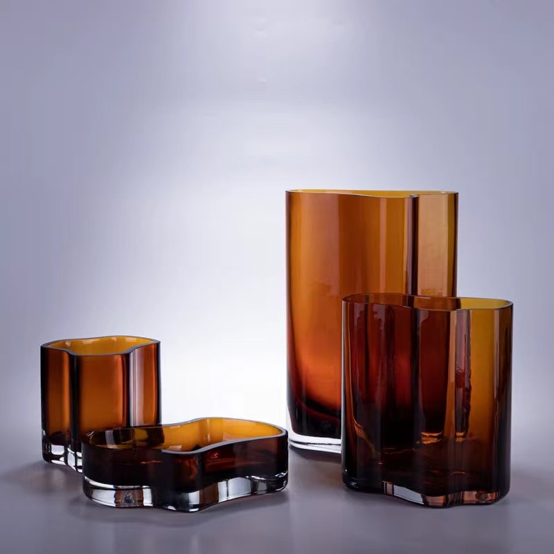 デザイナー厳選琥珀色半透明瑠璃花瓶セット見本間販売店家庭ソフト装飾
