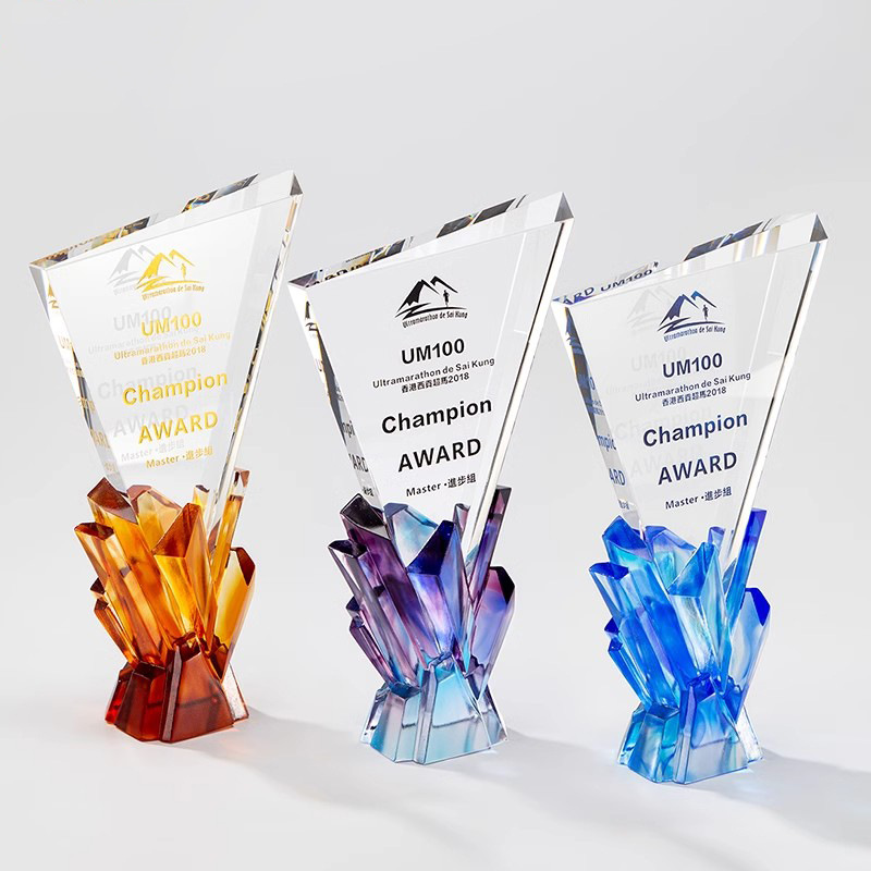 創意瑠璃トロフィーオーダーメイド会社年次総会企業優秀社員授賞記念水晶トロフィー