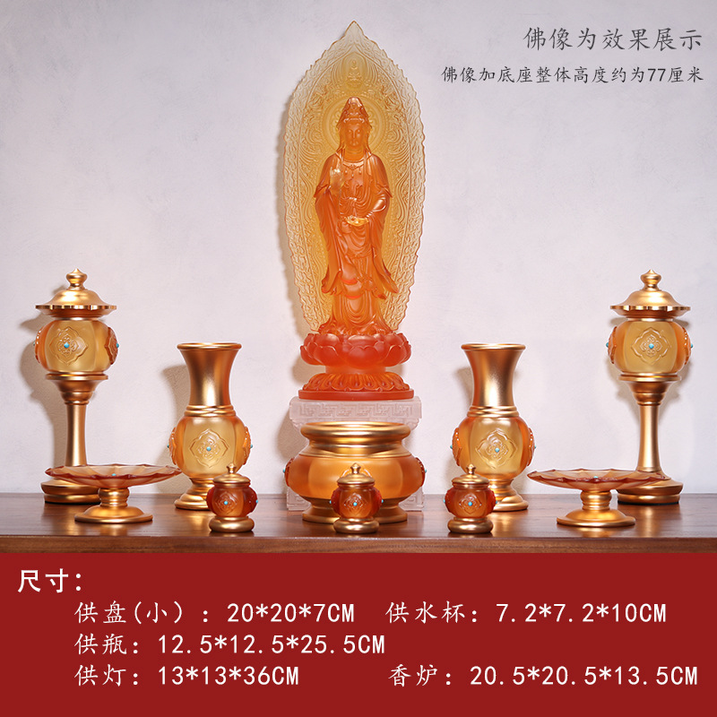 古法瑠璃如意供具供仏セット供具用品仏具フルセット长明灯香炉供果皿