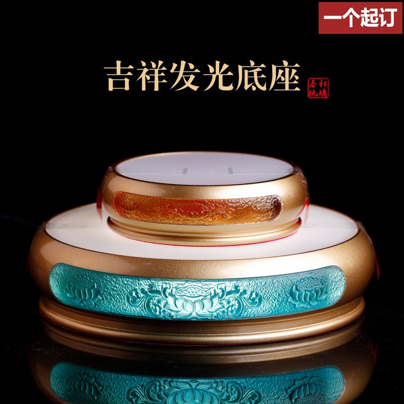 瑠璃八吉祥発光台座中国式禅意仏具用品ledランプに電灯の蓮の花座仏陀台座を挿します。