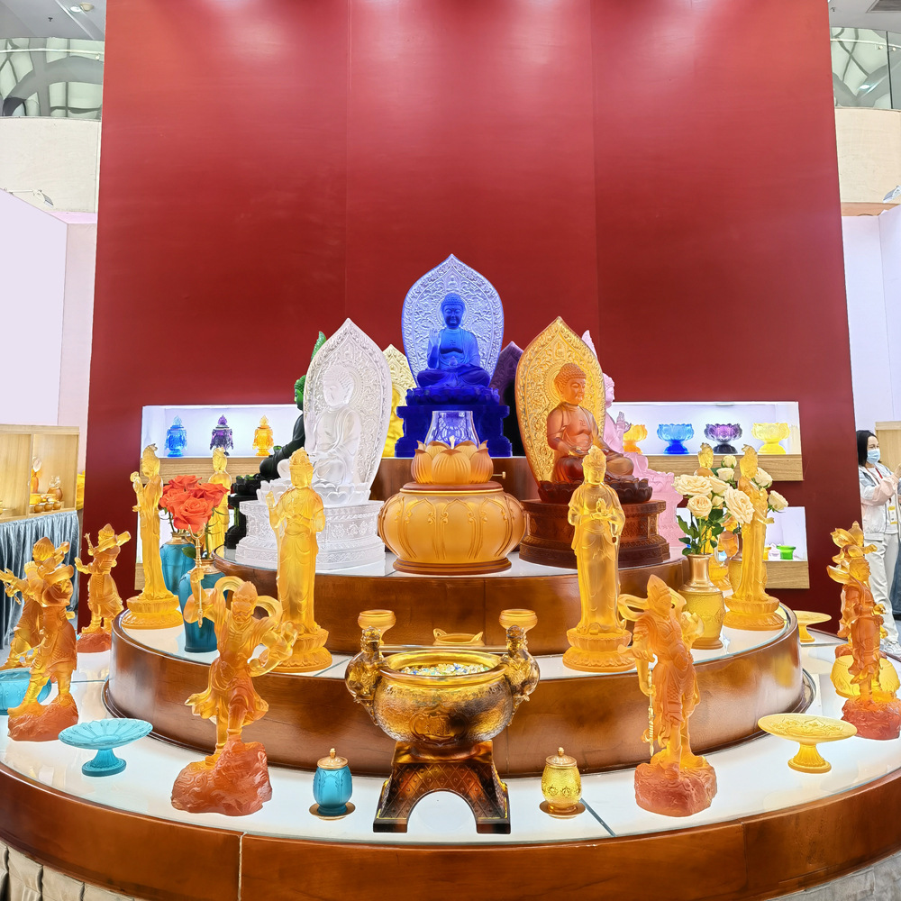 円通仏具工芸置物室内仏堂供具模造瑠璃花瓶花樽家庭装飾