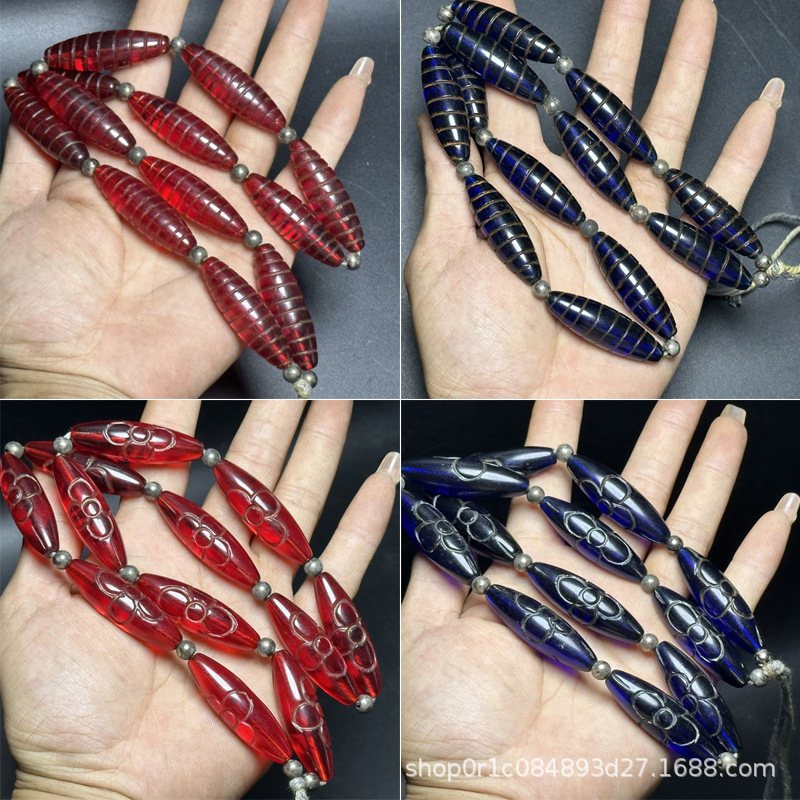 古風な古い瑠璃人形天珠13*40mm管珠勒子ネックレス老料瑠璃桶珠吊り鎖子