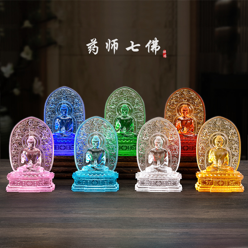 瑠璃薬師七仏仏堂仏像置物瑠璃背板台座薬剤師寺院自宅置物供養