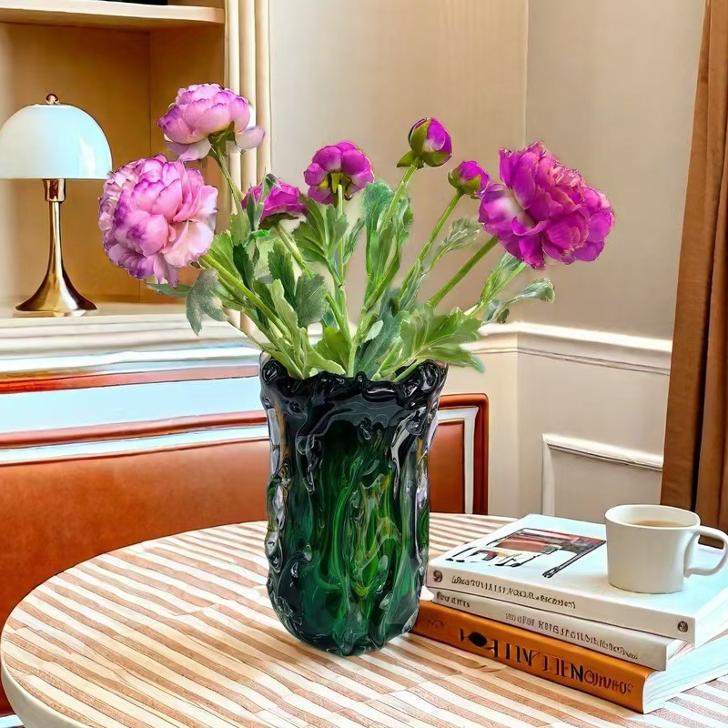 現代の軽い豪華な手作りの高級瑠璃の花瓶の家庭の客間の見本の部屋の柔らかい装飾品の重厚な生け花の装飾品の置物