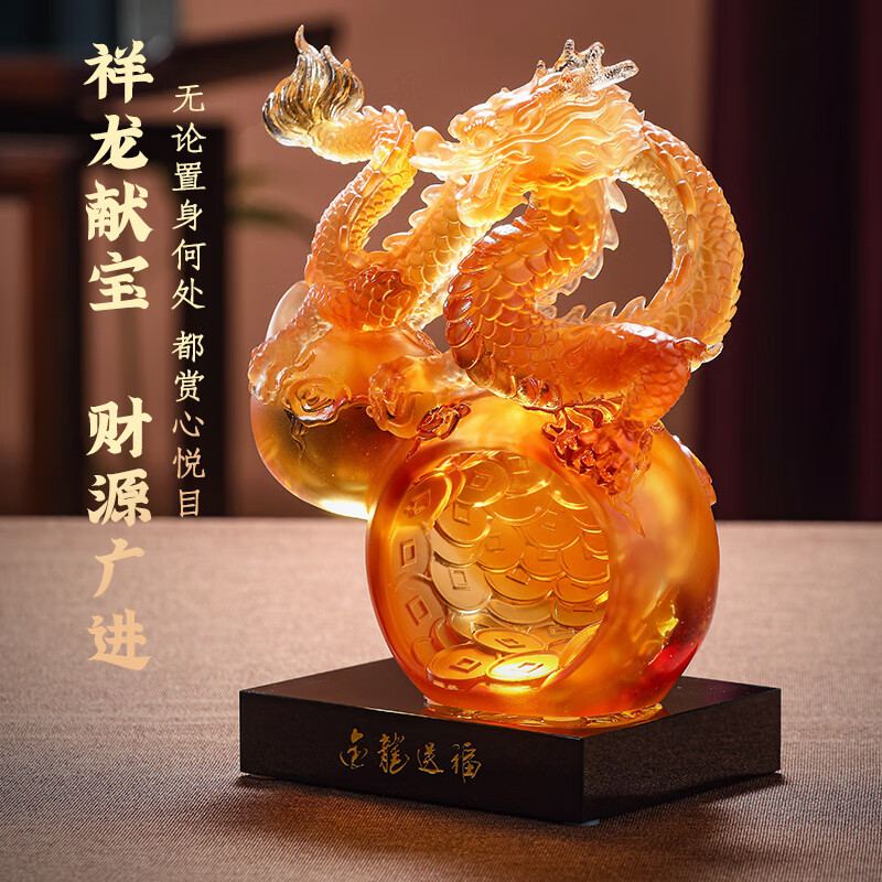 瑠璃生肖龍置物オフィス書斎置物龍年賀歳年会ビジネス移転開業プレゼント