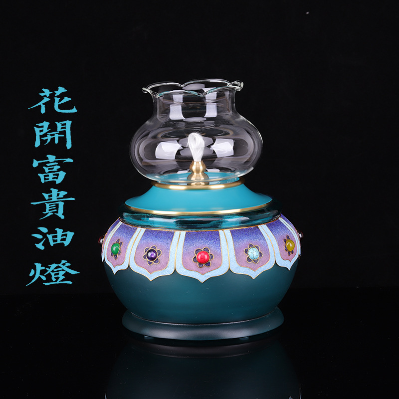 仏教用の古来の脱蝋ガラス製ランプ、調光可能な防風オイルランプ、仏教用の長寿命ランプ、仏前ランプ、万仏壁