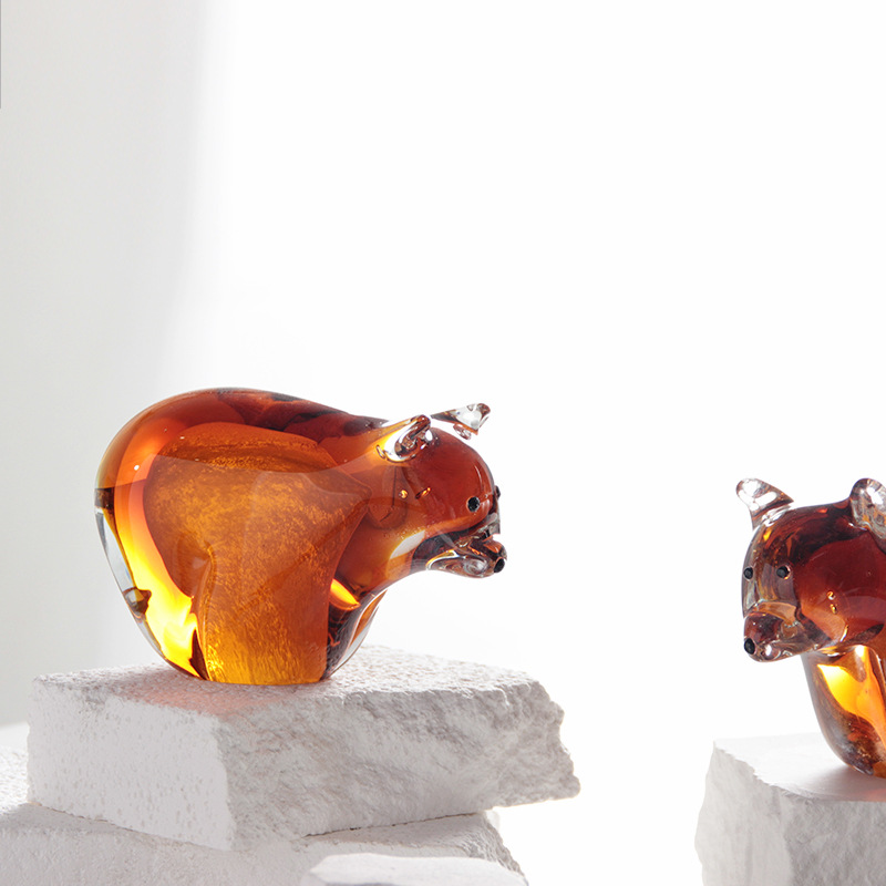 シ博瑠璃工芸品動物熊置物博山ガラス客間水晶芸術装飾クロスボーダー