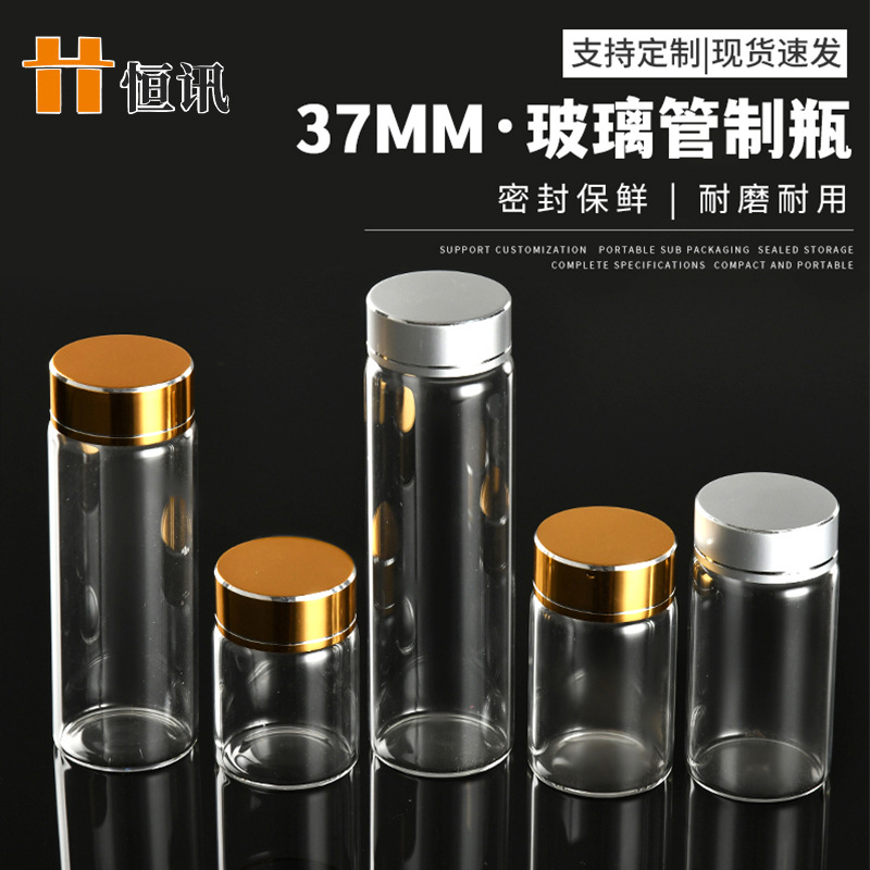 直径37mmのねじの口のアルミニウムの蓋の高ホウ素のシリコンの管のガラス瓶の花の茶瓶の虫の草の瓶の沈香の分注の瓶の卸売り