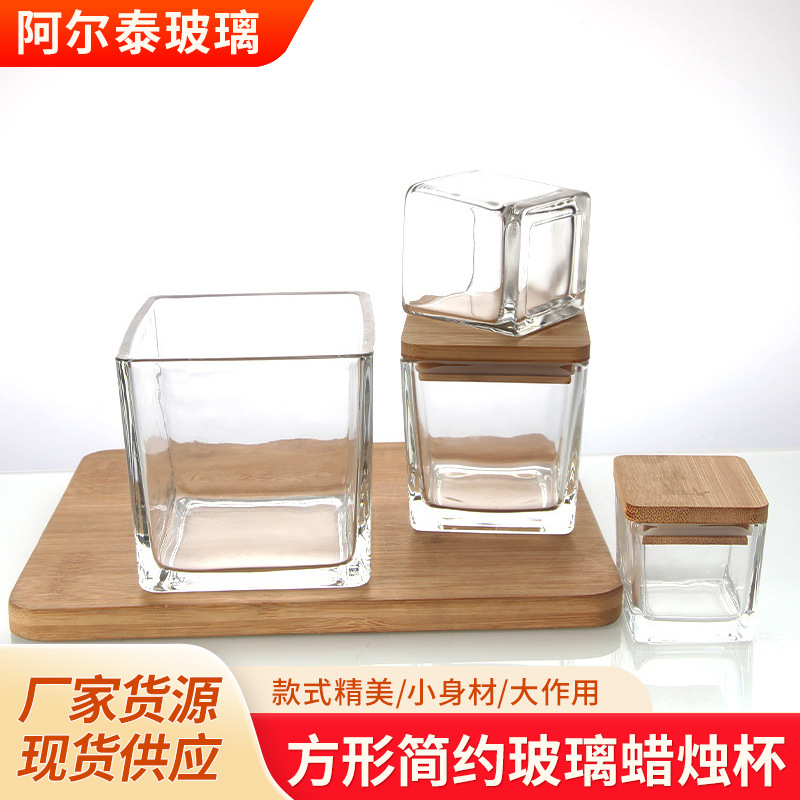 正方形のシンプルなガラスのアロマキャンドルのガラスの透明な厚いガラスの燭台のアロマキャンドルのカップの家庭の置物