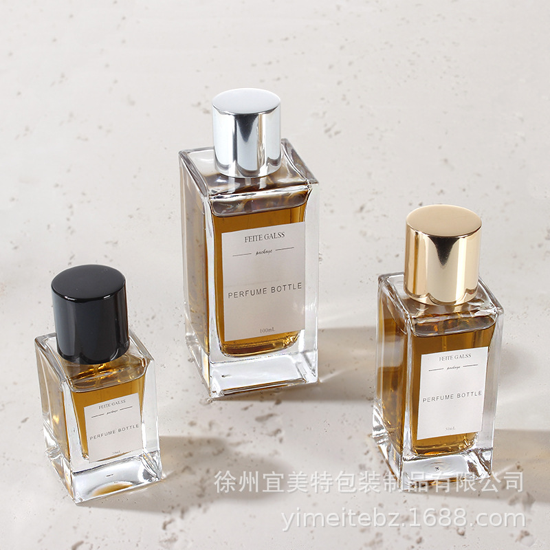 卸売り透明香水瓶30mlフラットスクエアガラス瓶50mlスプレーガラス瓶香水分注瓶