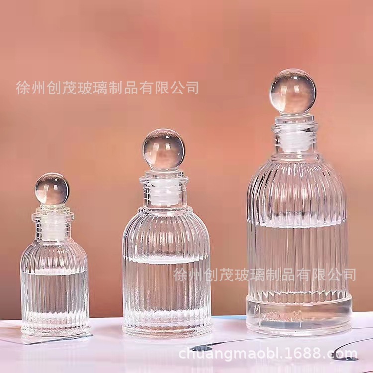 カラー透明縦紋ローマ瓶無火浮遊乾燥花藤条香薫瓶ガラス空瓶果実酒瓶