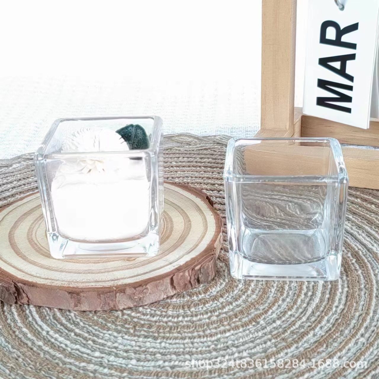卸売りガラス香薫ろうそくカップ四方のシリンダー透明燭台置物生け花水培花瓶大トランペット水槽
