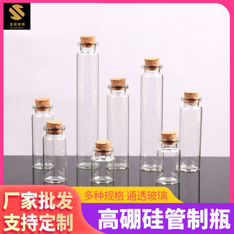 小容量パイプ瓶高ホウ素シリコン木栓瓶粉末金粉瓶小粒包装瓶願い事漂流ガラス瓶